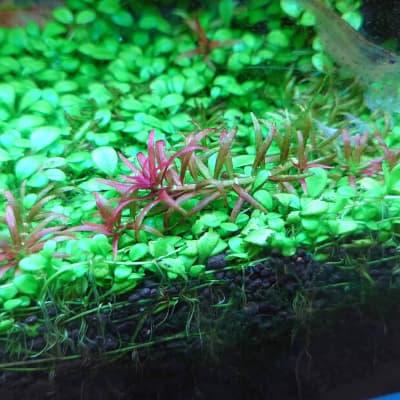 特徴:有茎水草。 名の通りきれいなグリーンの葉がつきます。 光が強くても赤くなることはありませんが、光が強い場合は横に広がるように伸びます。 比較的成長が早いです。 基本的にある程度水深のある水槽向けですが、やや葉が小さいので小型.