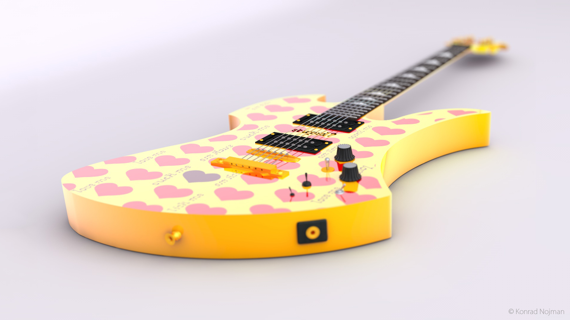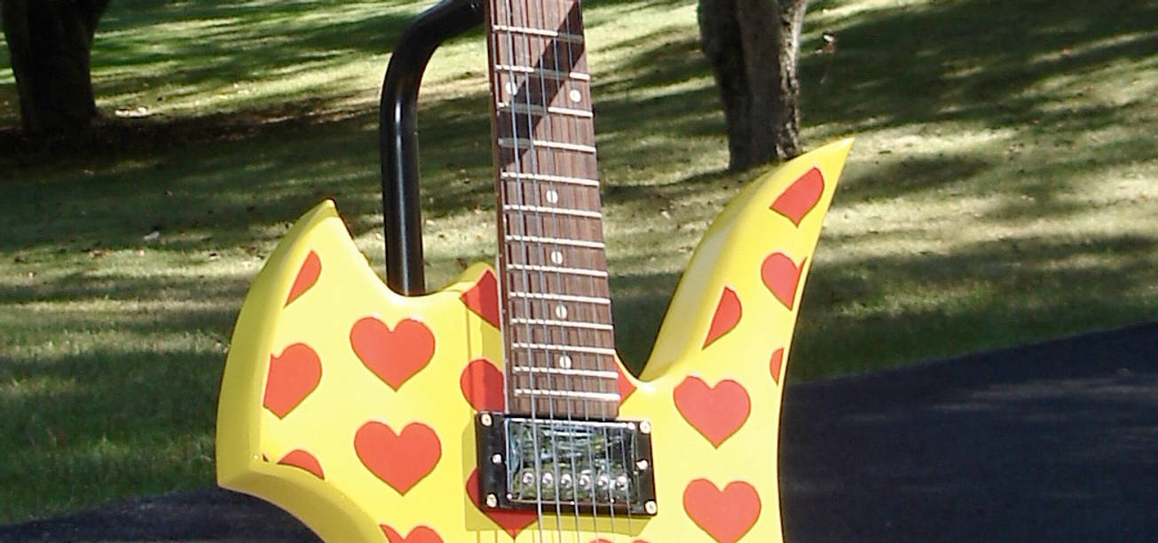Hide Yellow Heart Guitar Type Wall Clock The 13th Memo